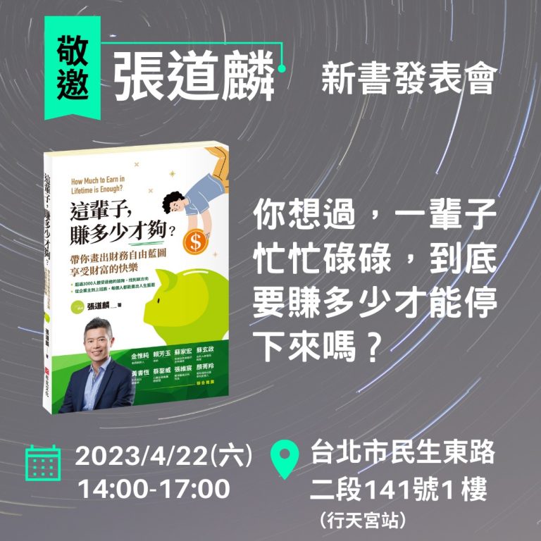 新書發表會講座|這輩子,賺多少才夠?面…